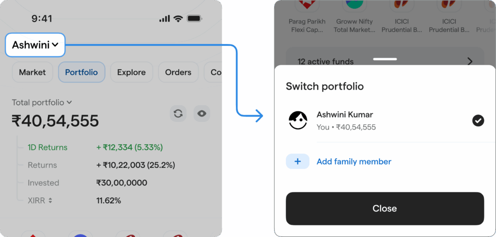 In many households, one member tracks investments for everyone — spouse, children, parents. This feature lets them stay on top of all portfolios and guide with any changes accordingly.